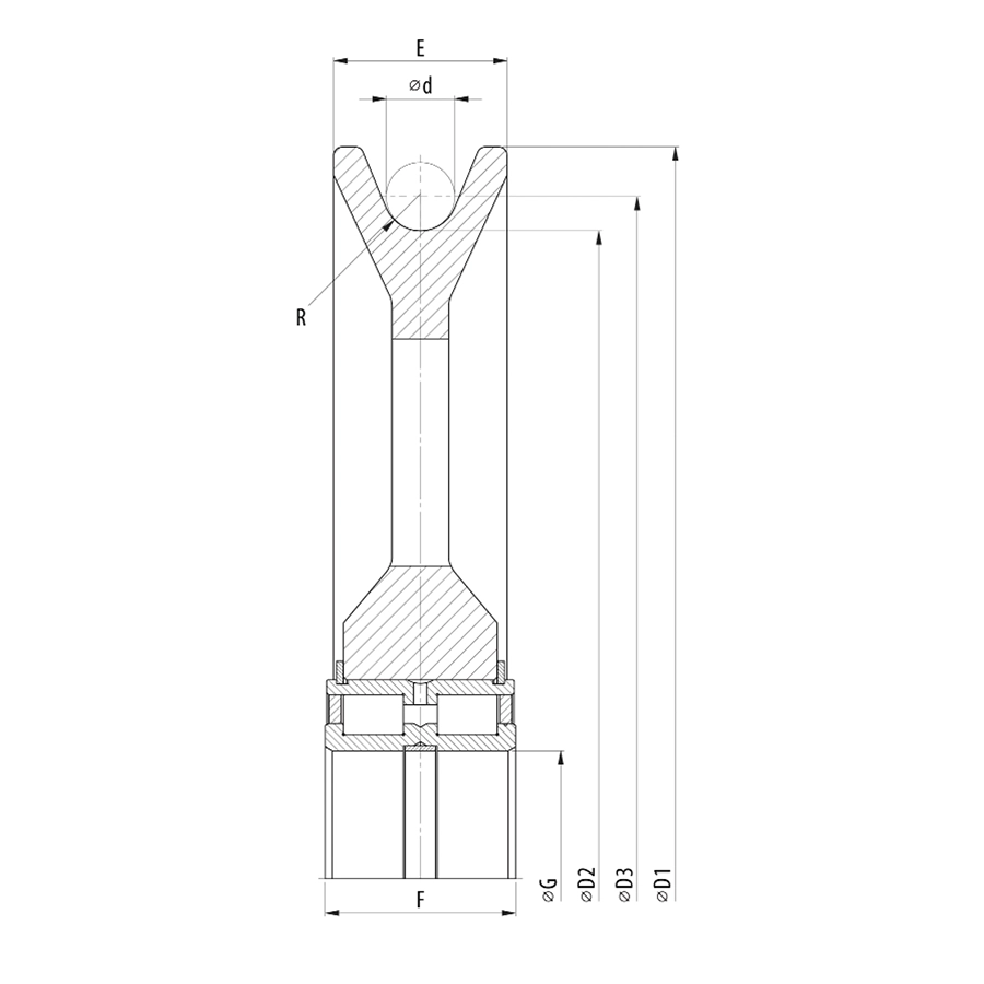 Sheave Tread ø Shaft ø Wire ød Groove Radius Outside ø PCD Rim Width Bearing Width