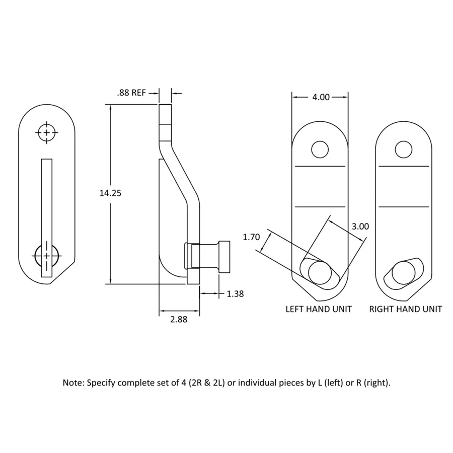 Specify complete set of 4 (2R & 2L) or individual pieces by L (left) or R (right).
