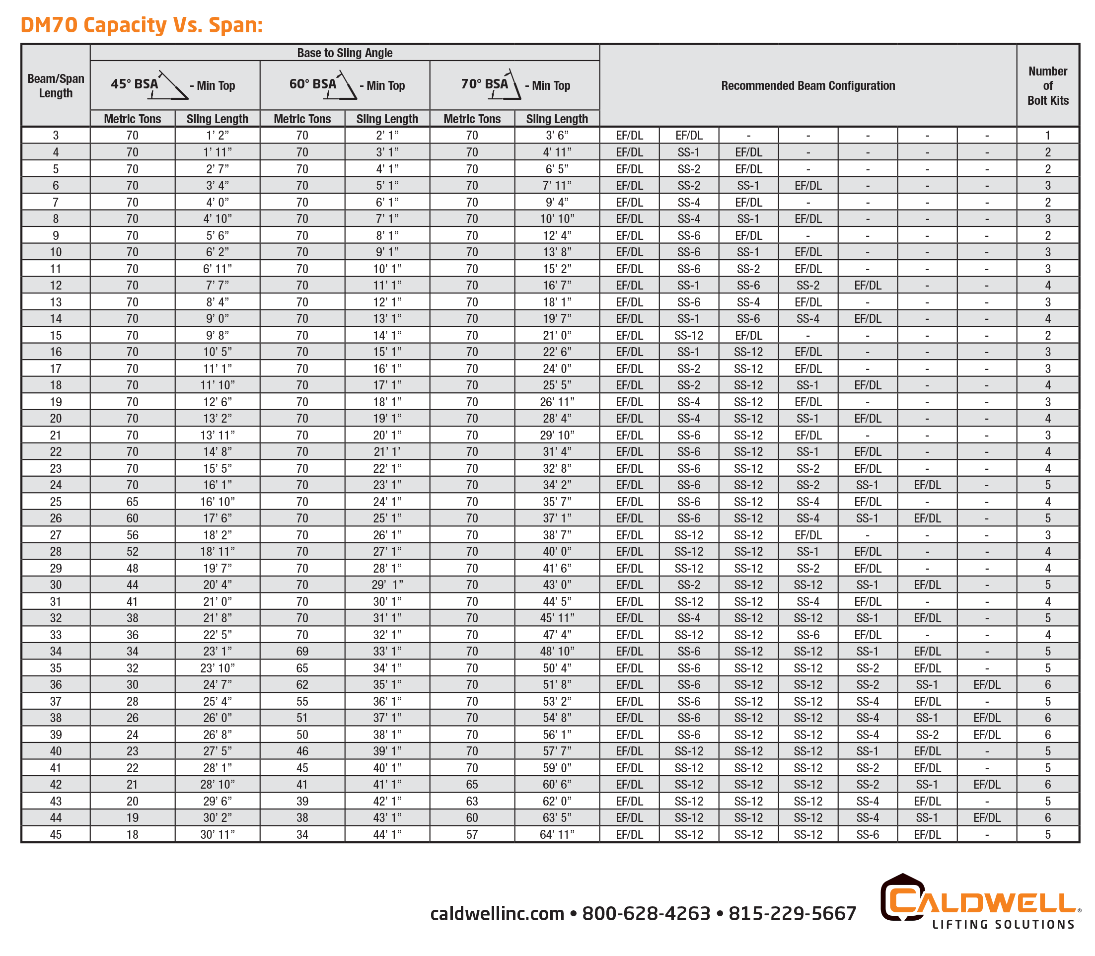 The Dura-Mod® 2-Point/70-Metric Ton Spreader Beam can be configured in spreads of 3′ to 45′. Order Spreader Sections, End Fittings, Drop Links, and Bolts separately to build the beam you want.