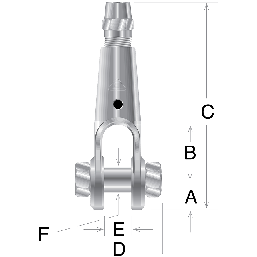 Electroline’s forged wire rope clevis (fork/jaw) fitting includes a threaded pin and nut. It features a swageless rope termination that can be quickly installed in the field without special tools or processes.