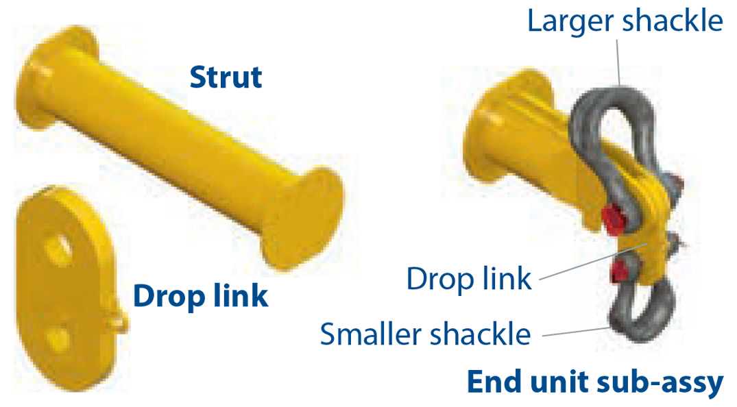 The Modulift Spreader is modular in length, and every spreader consists of 1 pair of End Units and Drop Links,