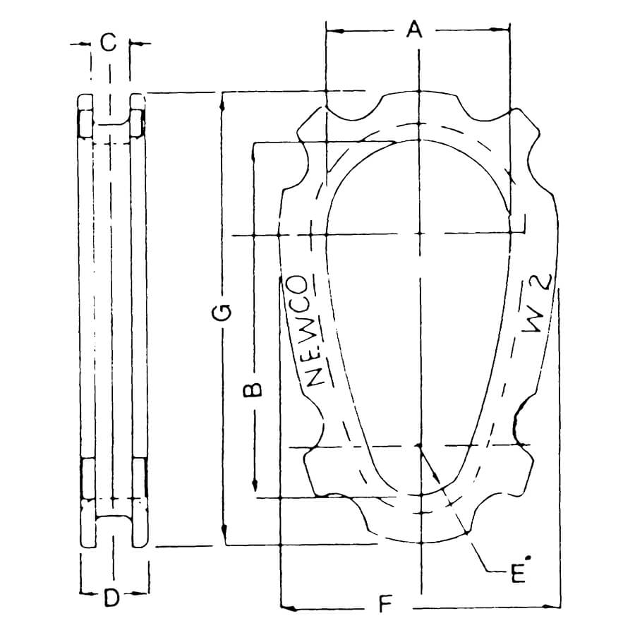 NEWCO SLIP-THRU THIMBLES are designed to allow passage of an identical thimble through its eye. This is a necessity when a regular sling is used as a choker sling. SLIP-THRU THIMBLES also prevent the eye of the sling from mashing together and the top of the eye wearing excessively. The generous inside dimensions allow the thimbles to fit large crane hooks. Rope retention ears are tapered so they can be bent or peened over wire rope.