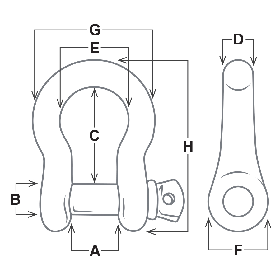 STOCK NUMBER SIZE PIN DIA. WORKING LOAD LIMIT (TONS) DIMENSIONS (IN) WEIGHT/PIECE (LBS)